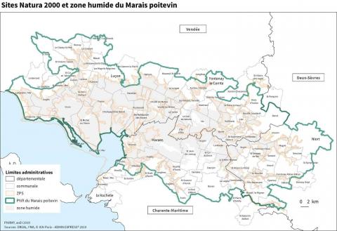 - Un site couvrant la partie du Marais poitevin en Nouvelle-Aquitaine (FR5400446)